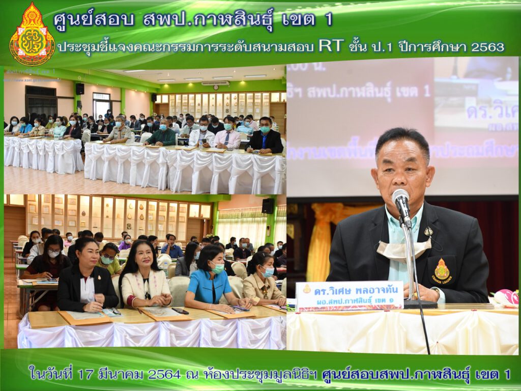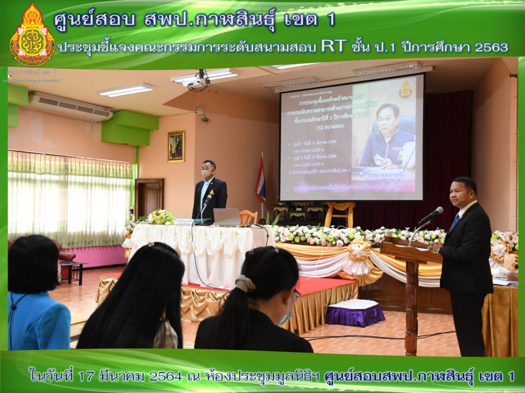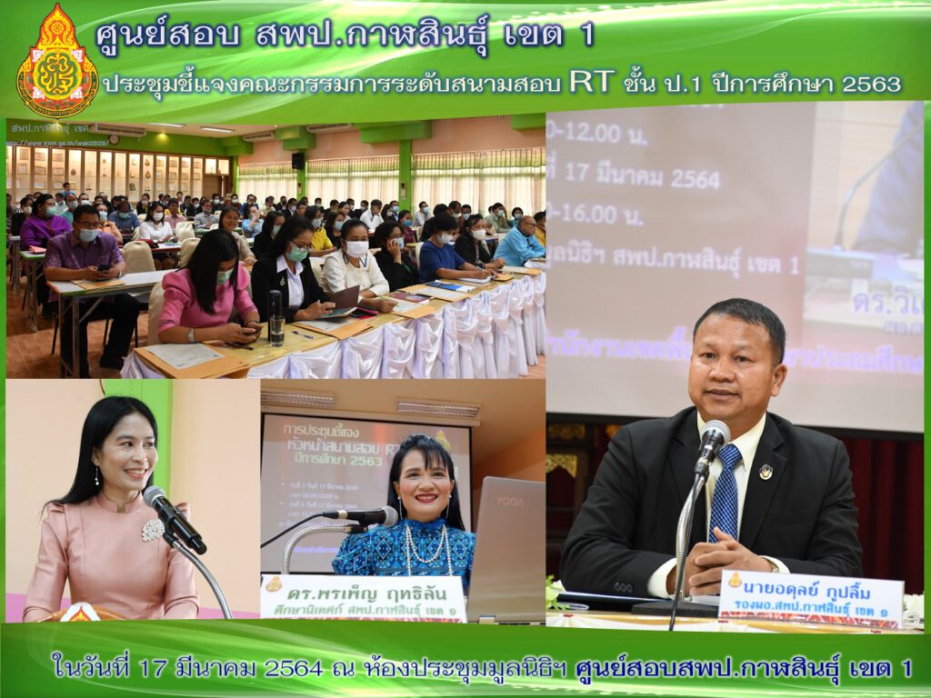 การประชุมดำเนินการโครงการประเมินความสามารถด้านการอ่าน (RT) ปีการศึกษา 2563 152 สนามสอบ ในวันที่ 17 มีนาคม 2564 เวลา 08.00 น.-16.30 น. ณ ห้องประชุมมูลนิธิฯ สำนักงานเขตพื้นที่การศึกษาประถมศึกษากาฬสินธุ์ เขต 1